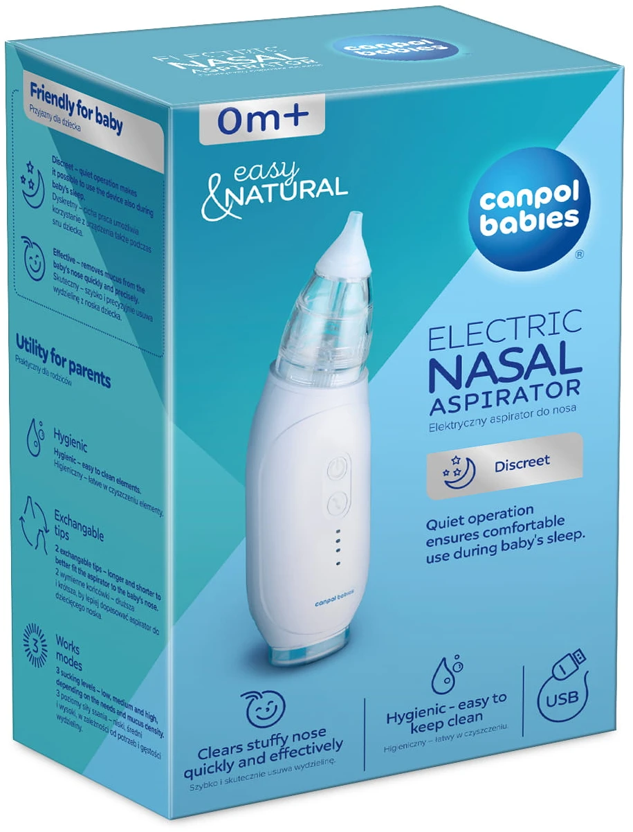- L’aspirateur nasal électrique EasyNatural de Canpol babies est idéal pour l’élimination rapide, efficace et hygiénique des sécrétions nasales et est recommandé pour les bébés dès les premiers instants de leur vie.