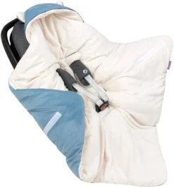 Couverture à Capuche Avec Oreilles Pour Siège De Voiture – Peluche écru Et Velours Denim