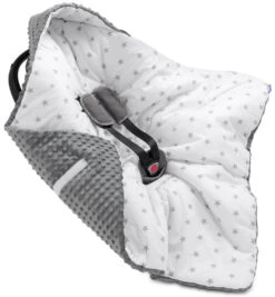 Couverture à Capuche Avec Oreilles Pour Siège De Voiture – Peluche écru Et Velours Gris