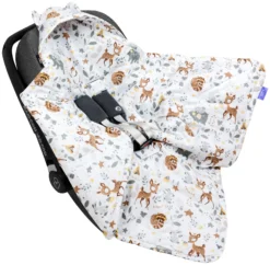 Couverture à Capuche Avec Oreilles Pour Siège De Voiture – Peluche écru Et Velours Vert Bouteille