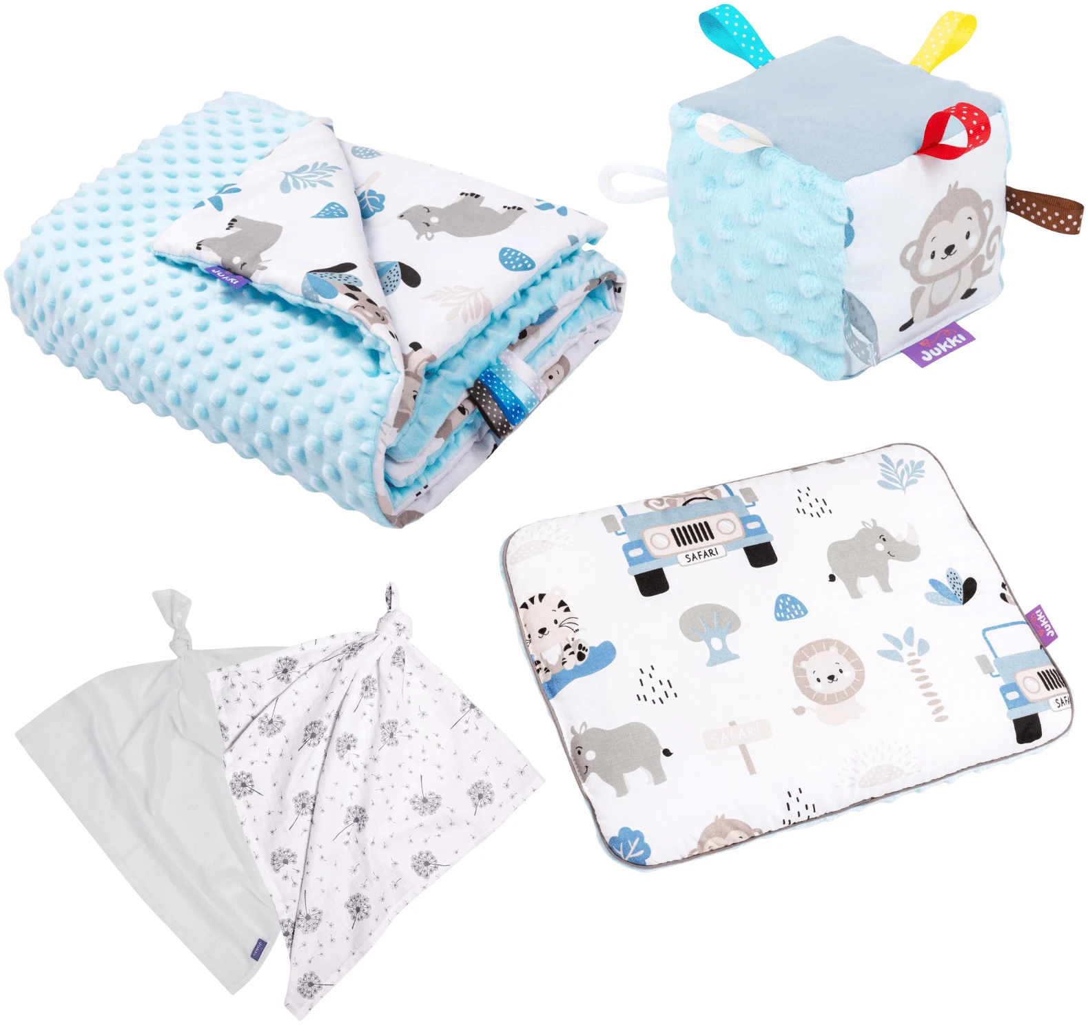 - 1. Couverture pour bébé 55×75 cm Safari Bleu Minky