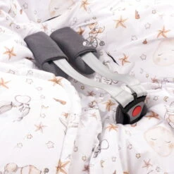 Les ouvertures pour les ceintures sont placées à des endroits stratégiques, de sorte que la couverture Jukki peuvent être utilisées avec tous les types de sièges de voiture (à 3 points comme à 5 points, qui ont la possibilité de se détacher et de s’ajuster), les porte-bébés, les balançoires pour bébé et les poussettes. Grâce à elle, vous pouvez guider et attacher correctement les ceintures de sécurité sans laisser de mou dangereux. Ceci est particulièrement important les jours de froid, lorsque vous habillez votre enfant d’une veste. N’oubliez pas que les ceintures de sécurité doivent être serrées de manière à ce qu’elles reposent contre le corps de l’enfant et non contre ses vêtements.