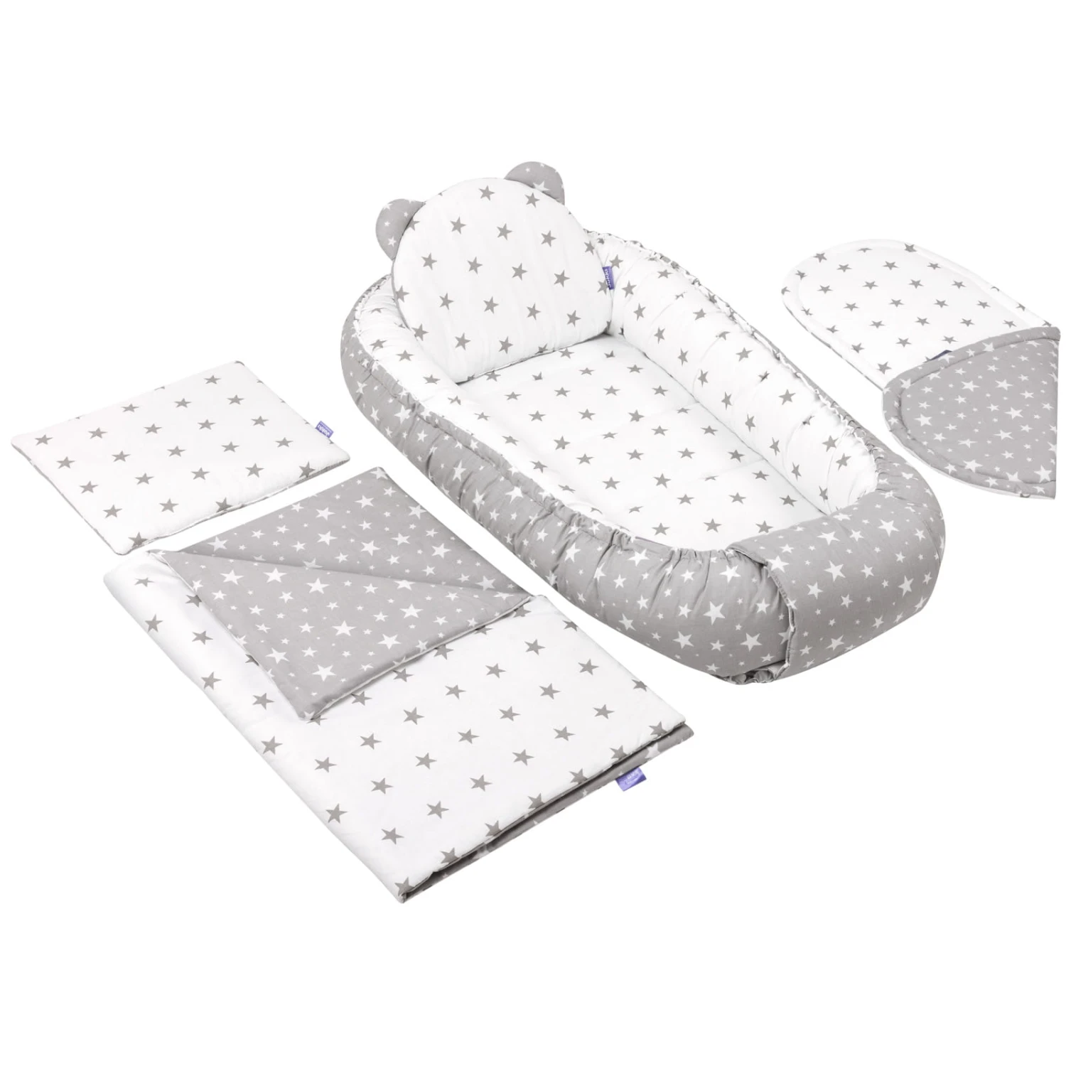 - Rembourrage non allergène : le matelas, le nid douillet, l’oreiller et la couverture sont remplis d’un voile de silicone 100 % antiallergique, ce qui prévient idéalement les irritations cutanées et maintient sa forme même après le nettoyage.