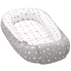 - Dans le lit bébé – le cocon offre une protection contre les barreaux durs du lit et les bords élevés du cocon permettent de coucher plus facilement l’enfant sur le côté, ce qui est très important, par exemple lorsque le bambin tombe,