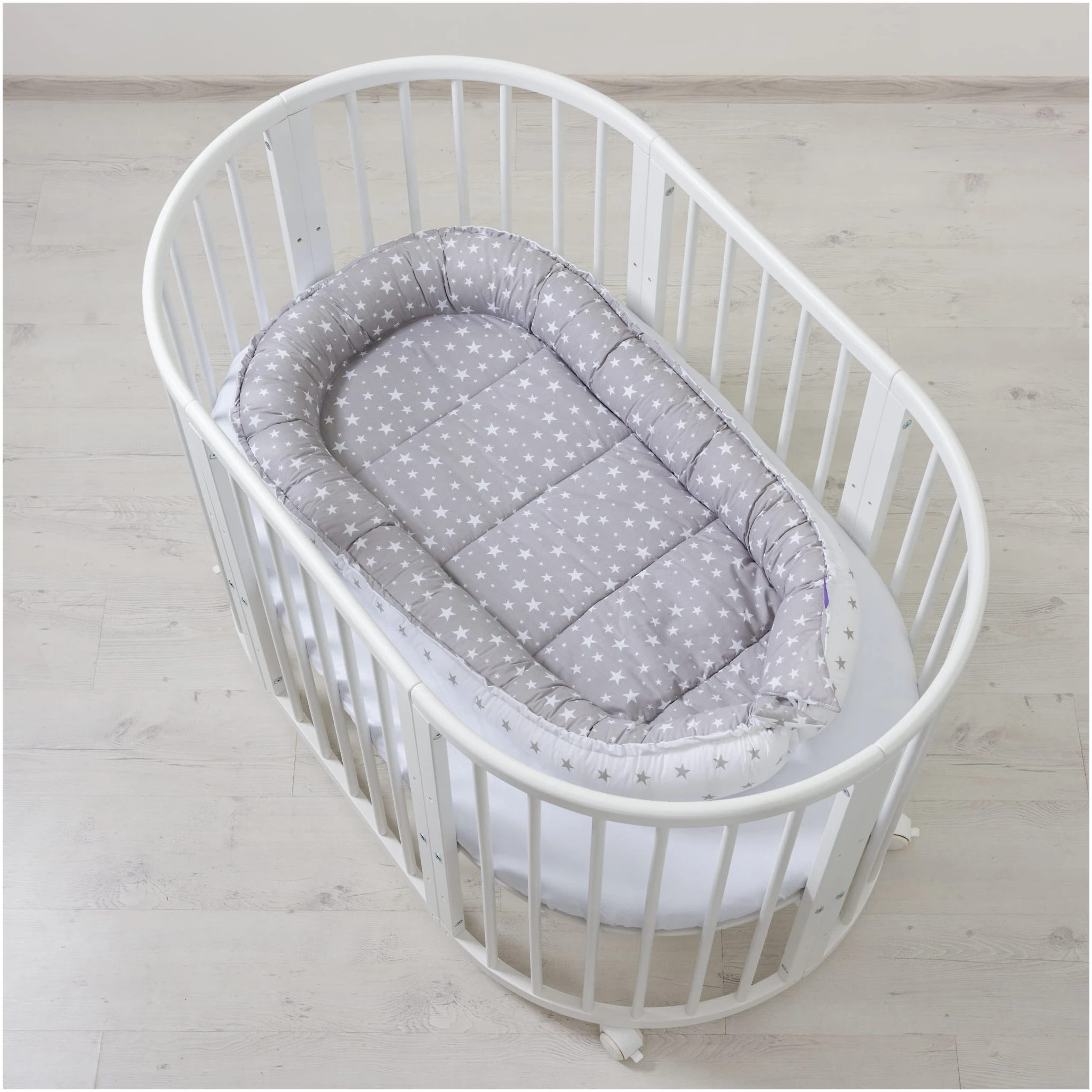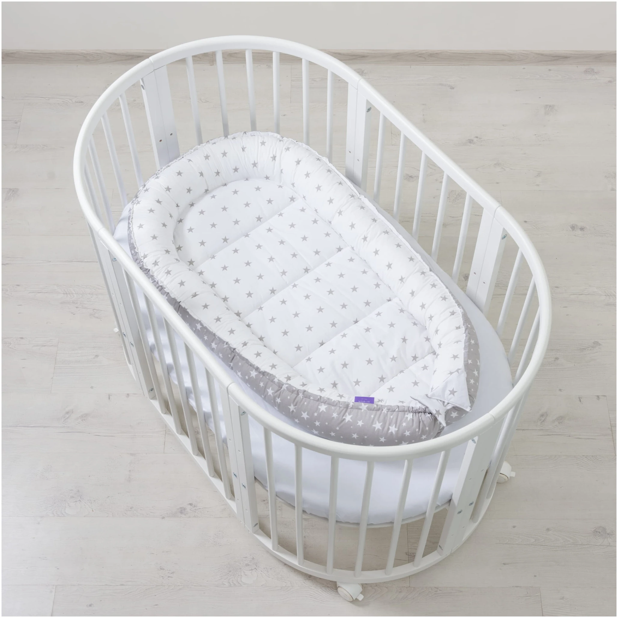 - Dans le lit bébé – le cocon offre une protection contre les barreaux durs du lit et les bords élevés du cocon permettent de coucher plus facilement l’enfant sur le côté, ce qui est très important, par exemple lorsque le bambin tombe,