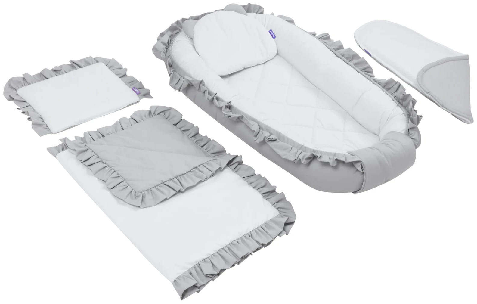 - Dans le lit bébé – le cocon offre une protection contre les barreaux durs du lit et les bords élevés du cocon permettent de coucher plus facilement l’enfant sur le côté, ce qui est très important, par exemple lorsque le bambin tombe,