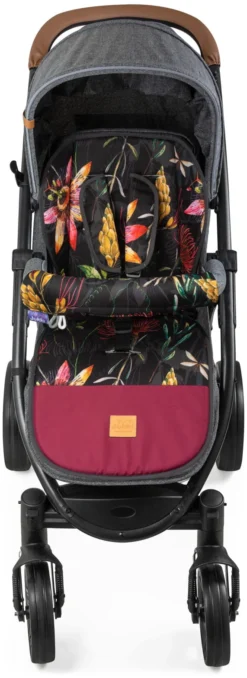 L’insert comprend des coussinets pour les ceintures de sécurité et le bandeau de la poussette.