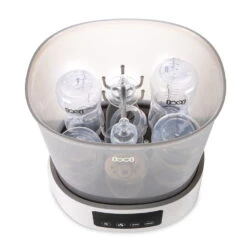 - Stérilisateur et séchoir en un : combinaison innovante d’un stérilisateur et d’un séchoir, pour que les biberons et les tétines soient rapidement propres, secs et sûrs pour bébé.