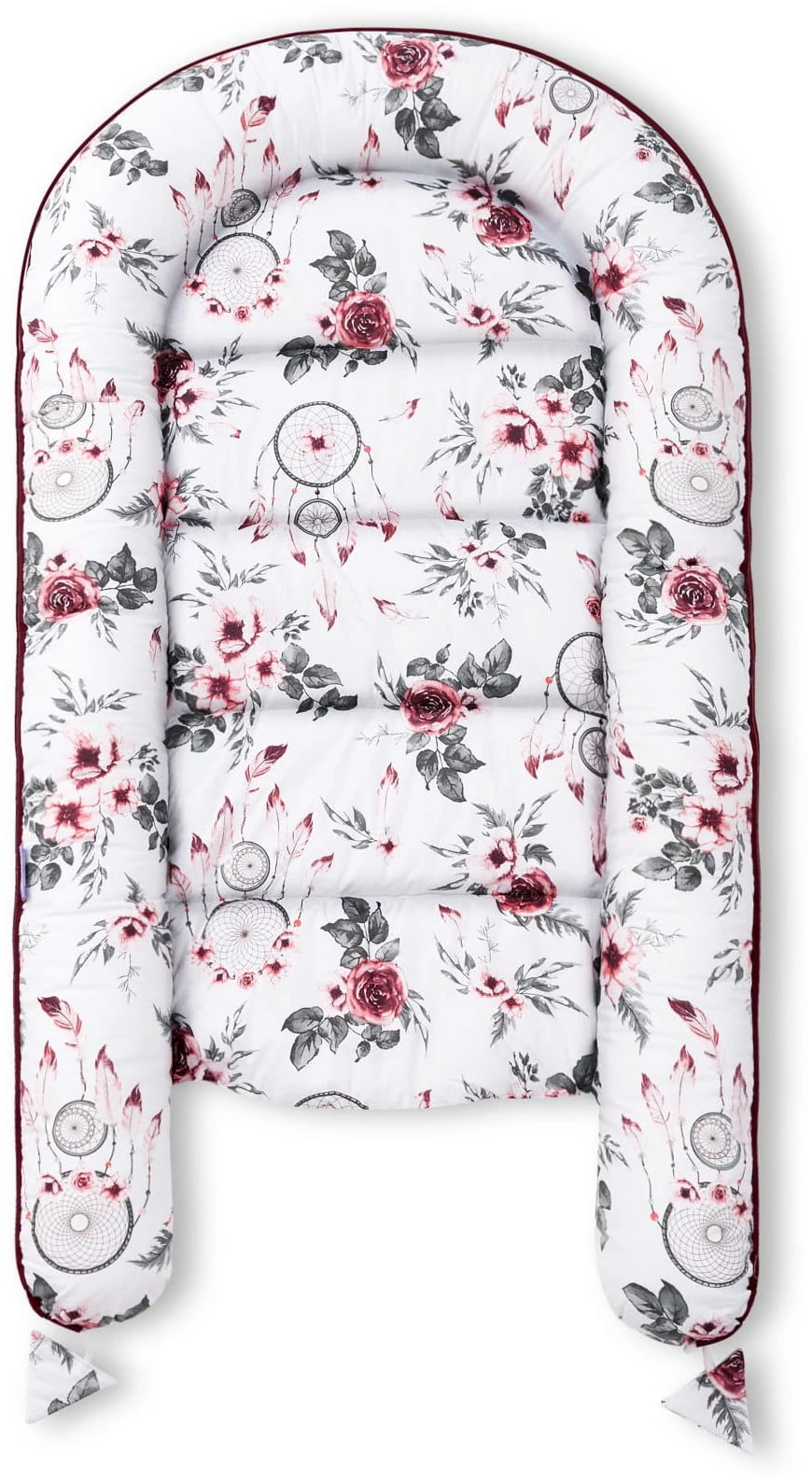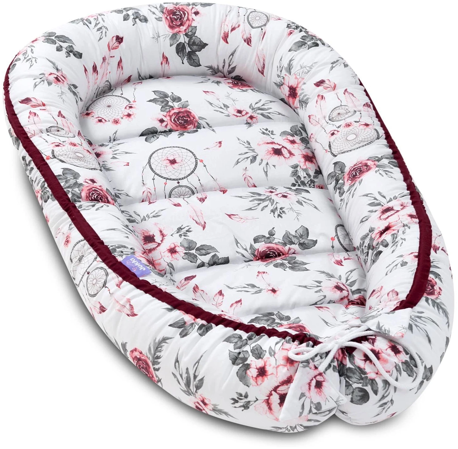 - Dans le lit bébé – le nid offre une protection contre les barreaux durs du lit, et les bords élevés du cocon permettent de coucher plus facilement l’enfant sur le côté, ce qui est très important, par exemple lorsque le tout-petit tombe,