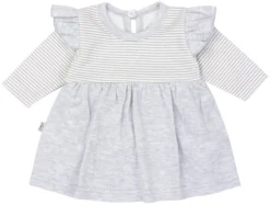 La robe en coton pour bébé est une combinaison d’un body classique et confortable qui s’ouvre à l’entrejambe avec un joli volant.