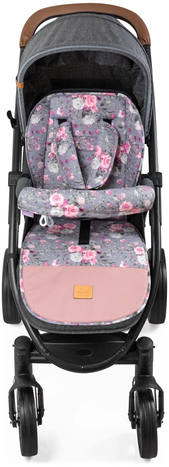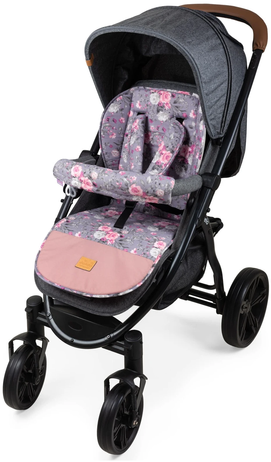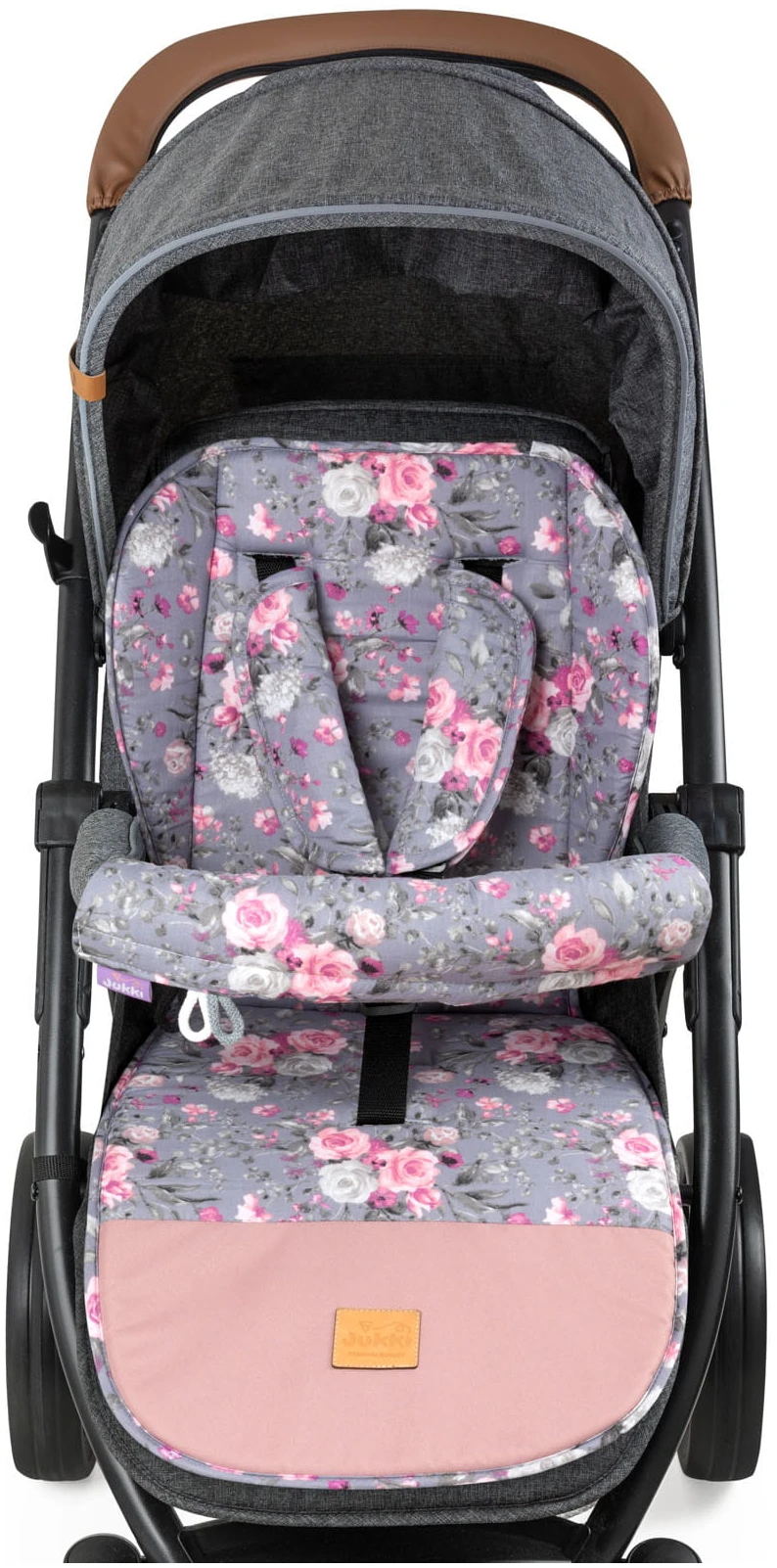L’insert comprend des coussinets pour les ceintures de sécurité et le bandeau de la poussette.