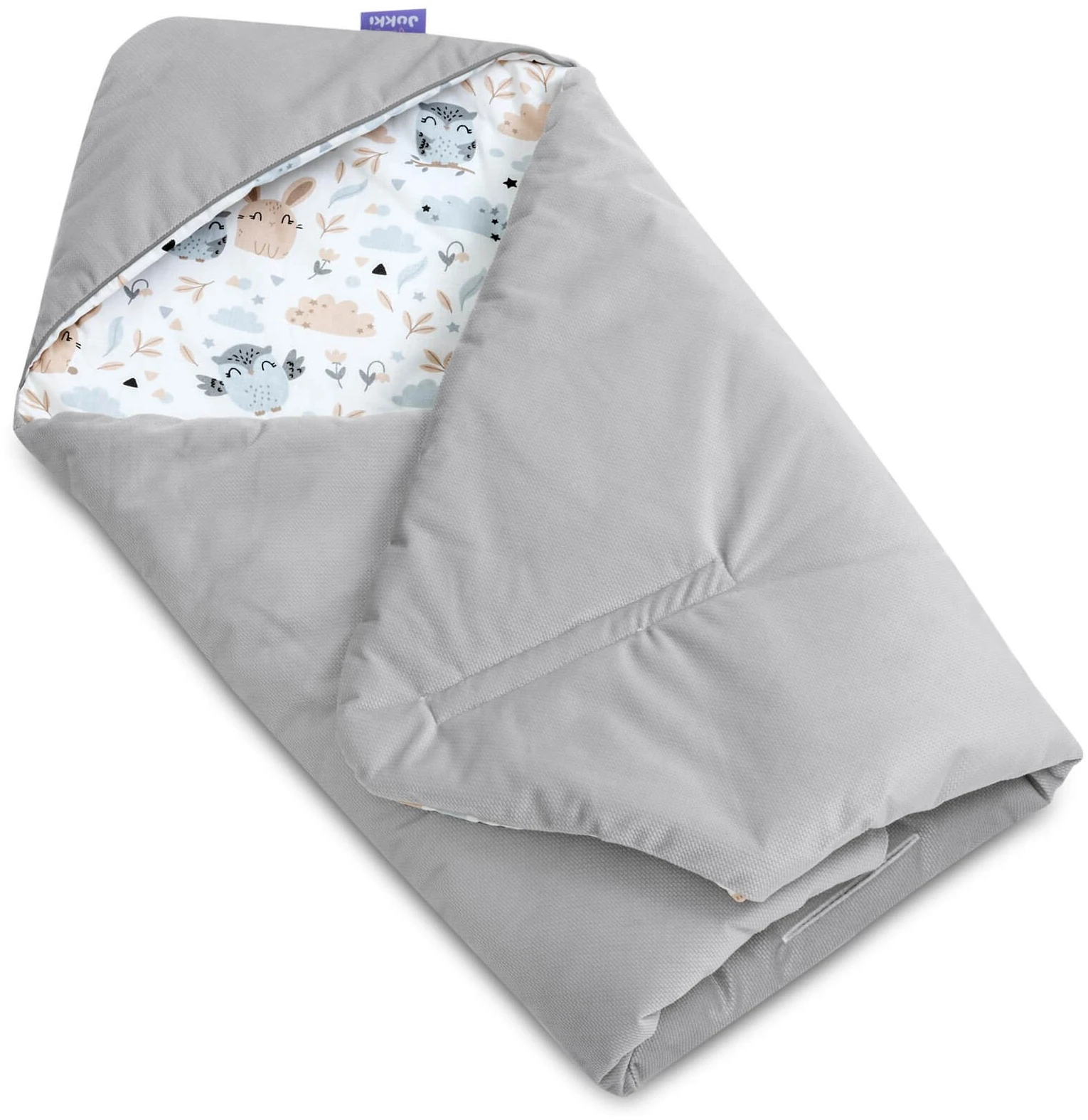 Le plaid d’emmaillotage Jukki est fabriqué à partir d’un tissu en coton et en velours ultra doux, qui garantit une circulation d’air à 100%. Le rembourrage du plaid est composé d’une couche d’ouate polyester siliconée antiallergique, qui rend le plaid doux et chaud pour le bien être de votre bébé. Le plaid d’emmaillotage Jukki, grâce à ses propriétés est idéal pour le printemps, les journées plus froides en été, l’automne ainsi qu’en tant que couverture en hiver pendant les voyages en voiture.