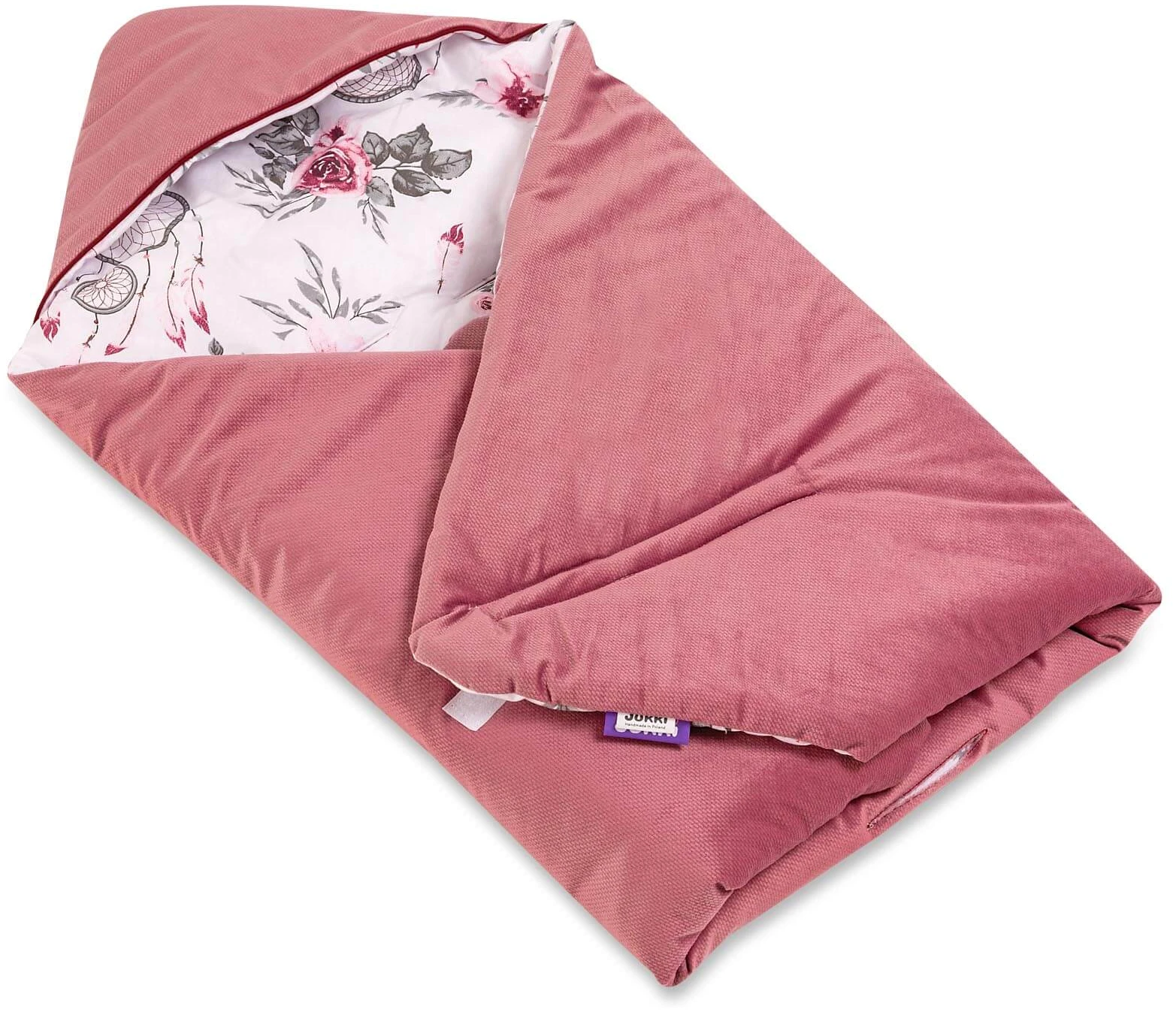 Le plaid d’emmaillotage Jukki est fabriqué à partir d’un tissu en coton et en velours ultra doux, qui garantit une circulation d’air à 100%. Le rembourrage du plaid est composé d’une couche d’ouate polyester siliconée antiallergique, qui rend le plaid doux et chaud pour le bien être de votre bébé. Le plaid d’emmaillotage Jukki, grâce à ses propriétés est idéal pour le printemps, les journées plus froides en été, l’automne ainsi qu’en tant que couverture en hiver pendant les voyages en voiture.