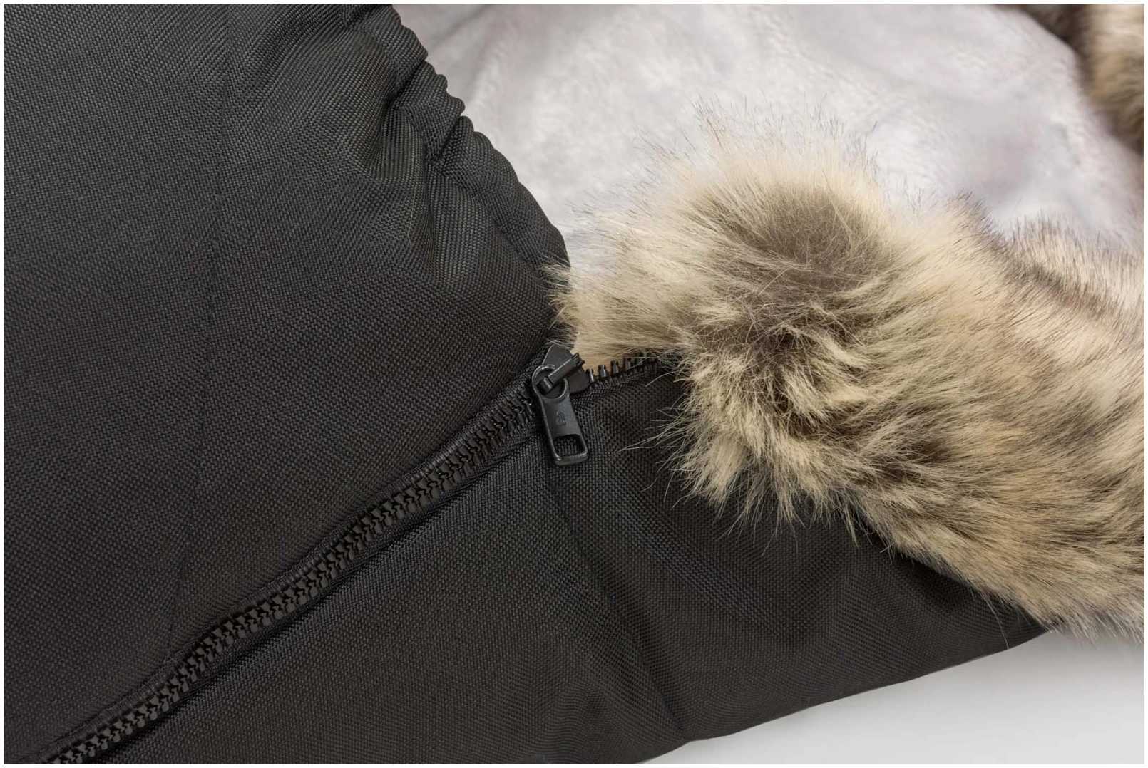 - Grande capuche bordée de fourrure élégante (avec possibilité de réglage de la profondeur avec un cordon),