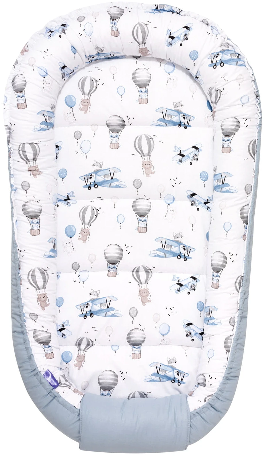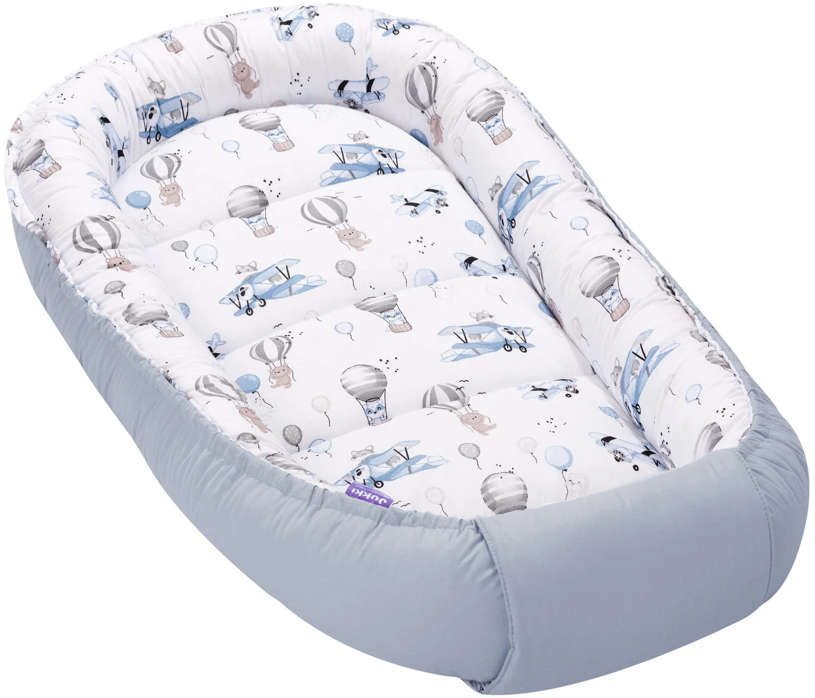 - Dans le lit bébé – le nid offre une protection contre les barreaux durs du lit, et les bords élevés du cocon permettent de coucher plus facilement l’enfant sur le côté, ce qui est très important, par exemple lorsque le tout-petit tombe,